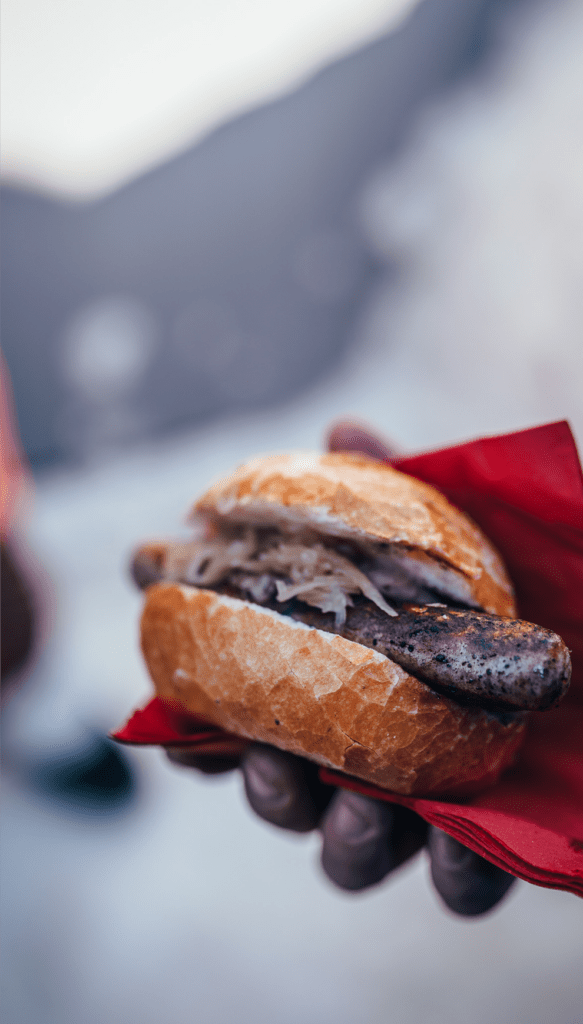 Wir versorgen euch Bratwurstsemmeln und selbstgemachten weißen Glühwein, außerdem gibt es Bier und AFG